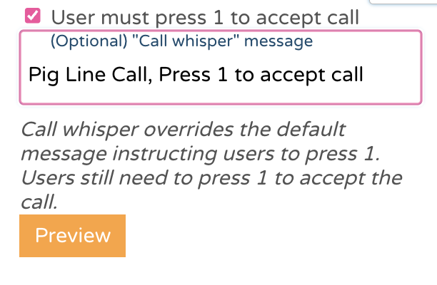 A "Call Whisper" message is a custom message you will also hear before accepting the call.