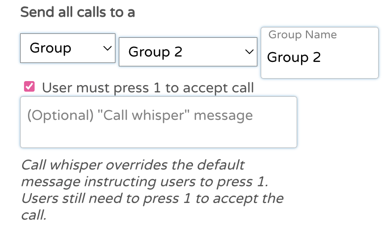 - All calls sent to a group will play the custom message when your agent answers the call.