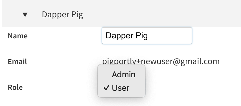 | 5 | Click on the Role drowpdown and select Admin or User (for basic) |
