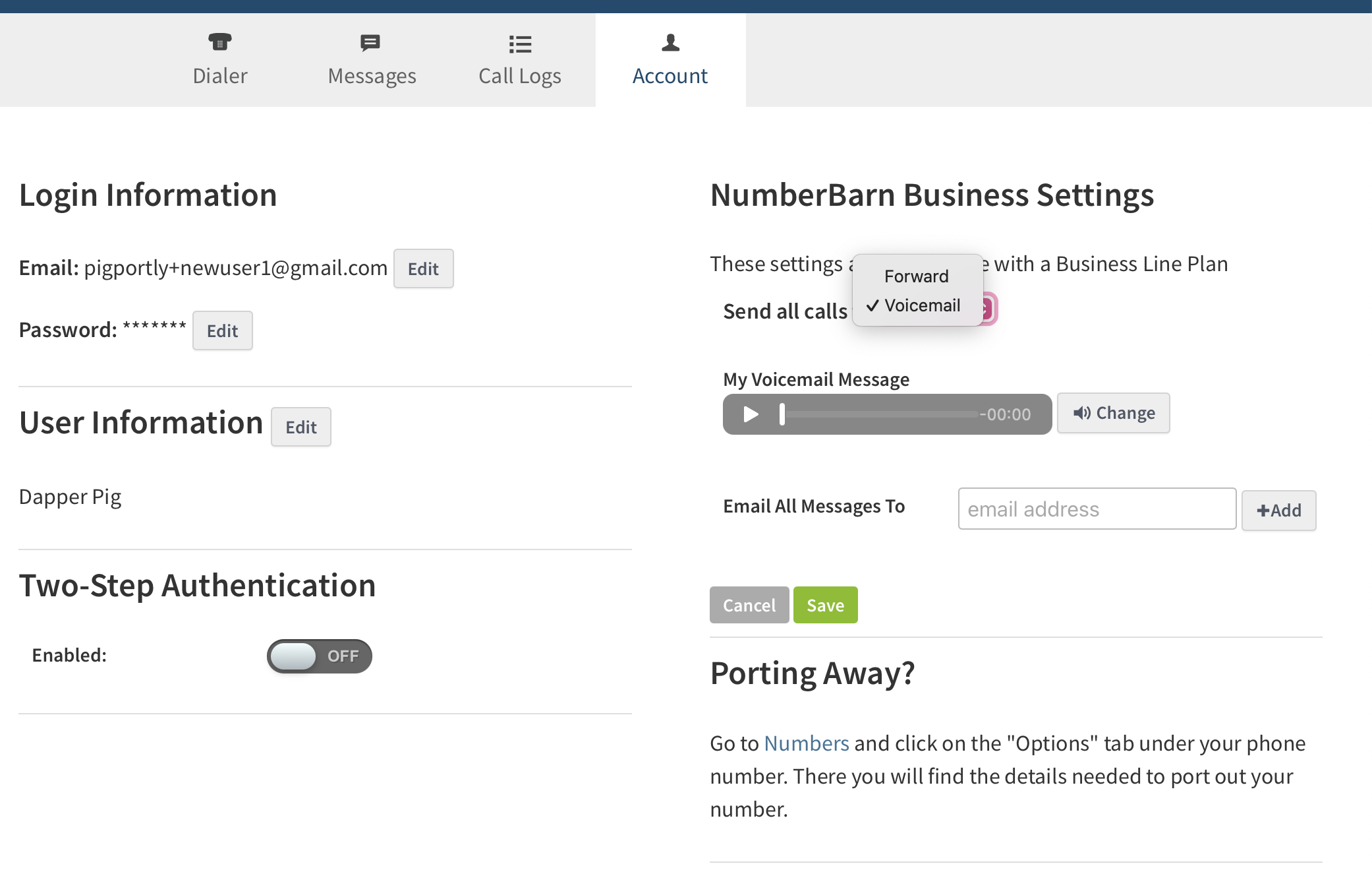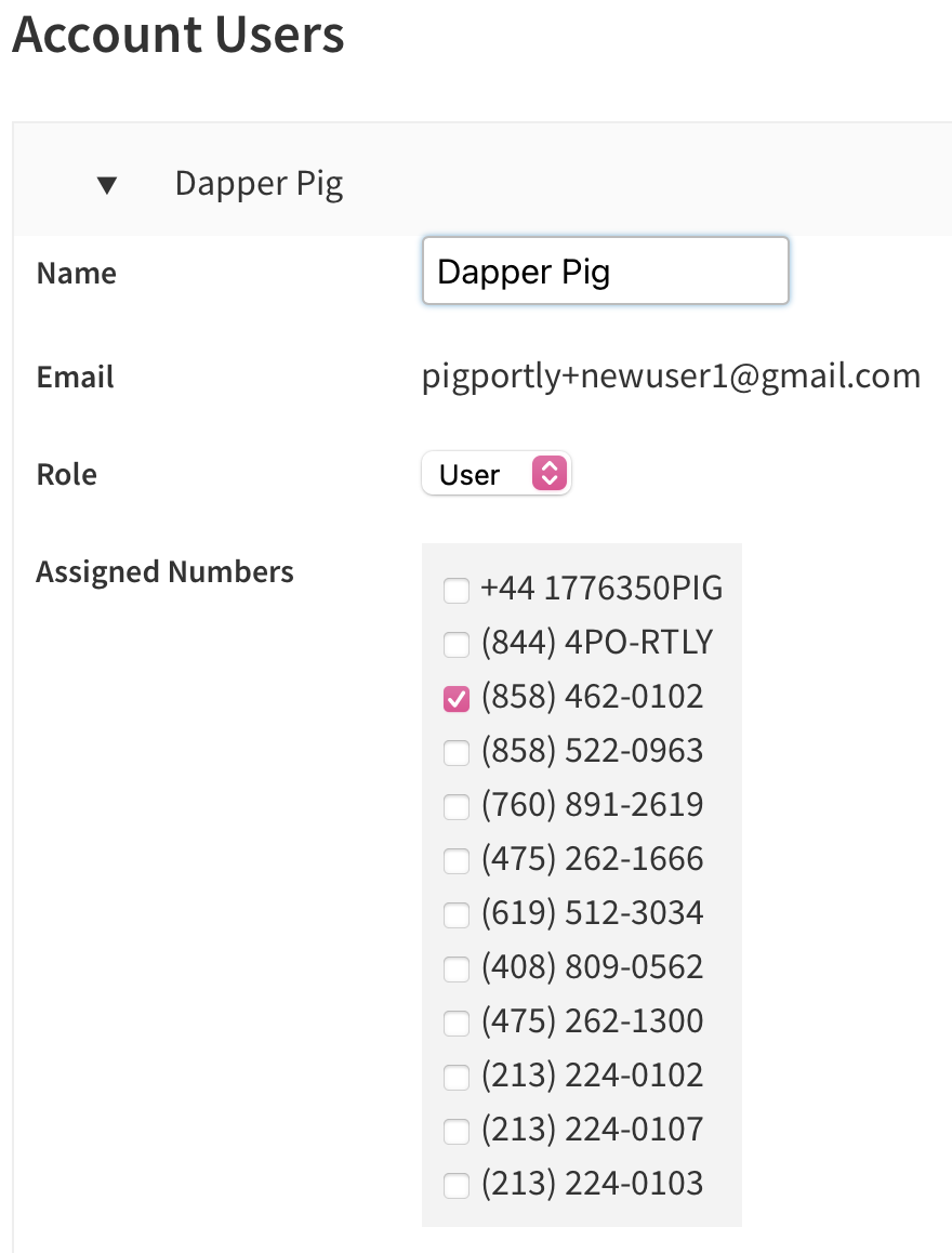 - You can choose which phone number(s) in your account each User can have access to
