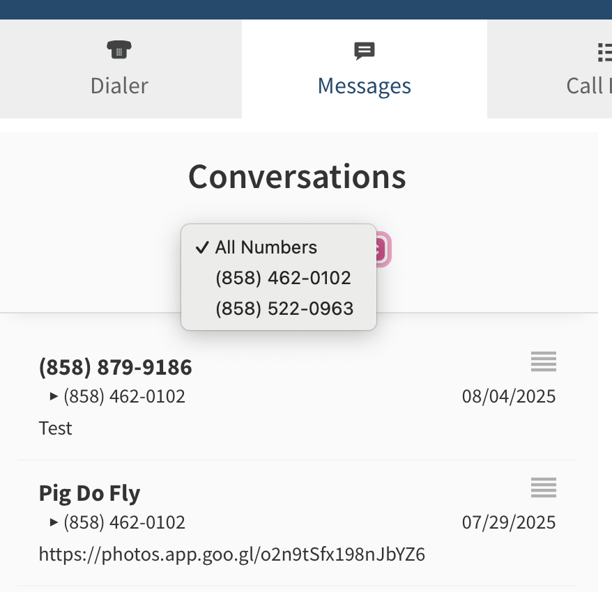 Team user will now have access to the Messages and Call Logs section of your account and show only the messages and calls to their assigned phone number(s).