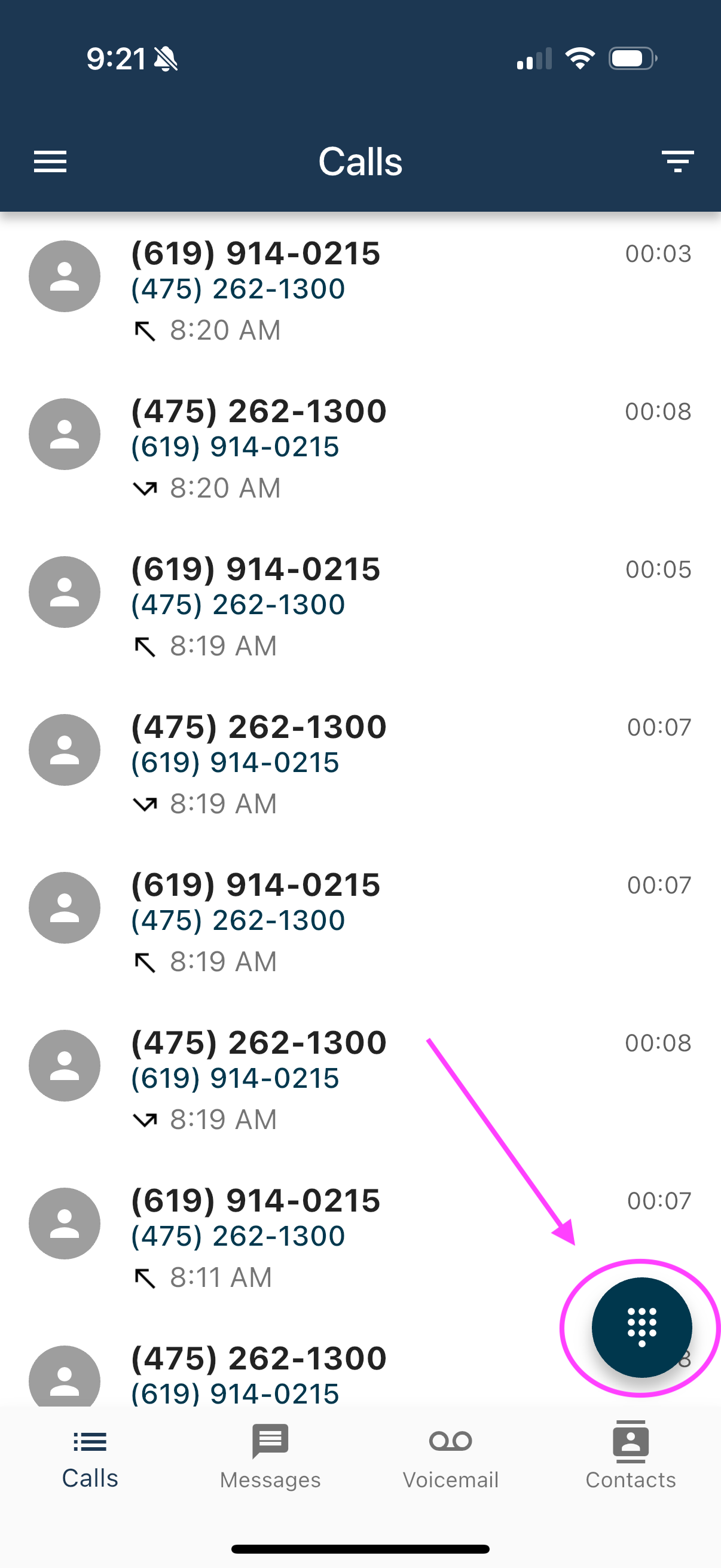 | 3 | Click on Dial pad icon in lower right-hand corner of screen | ||