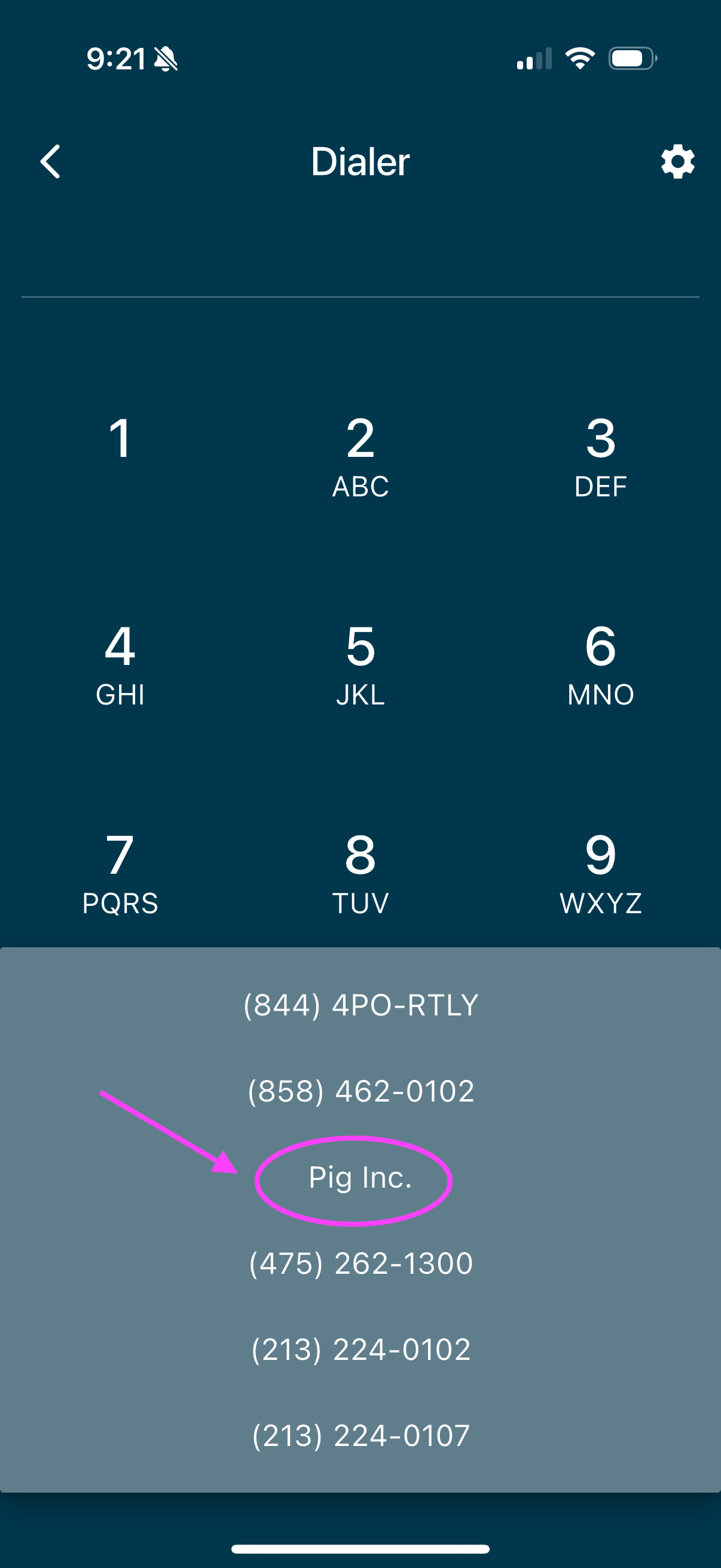 | 4 | Choose the NumberBarn number to place a call from in the dropdown list |