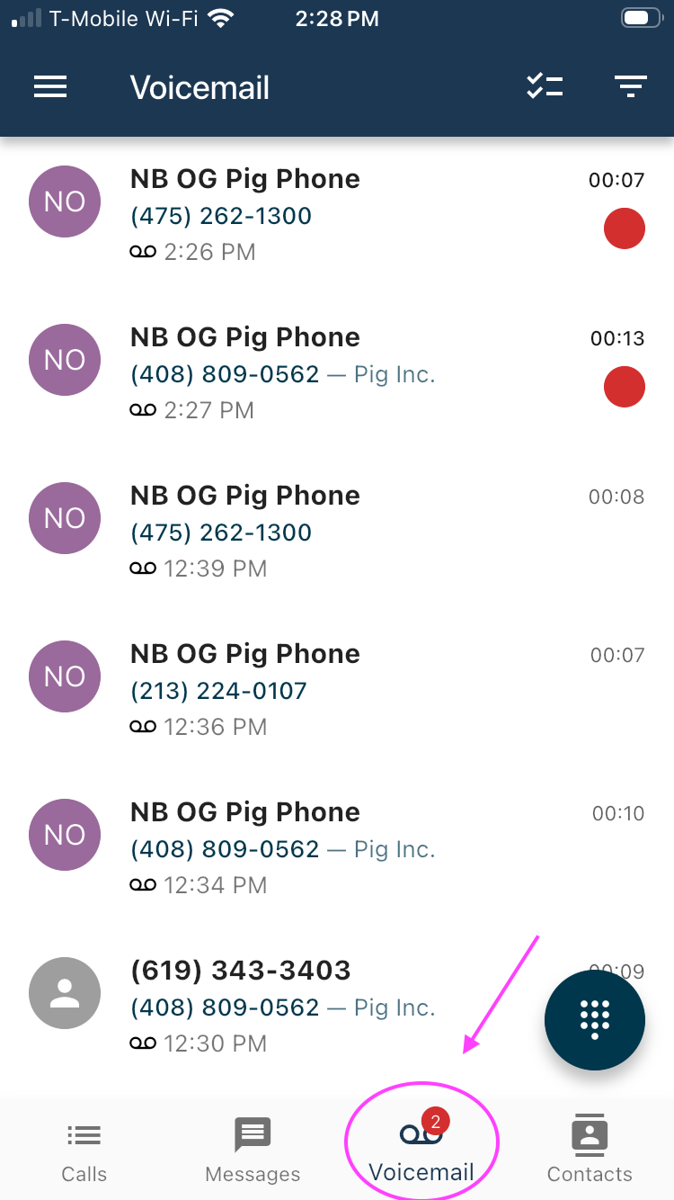 | 1 | Click on the Voicemail tab at the bottom of the menu bar | ||