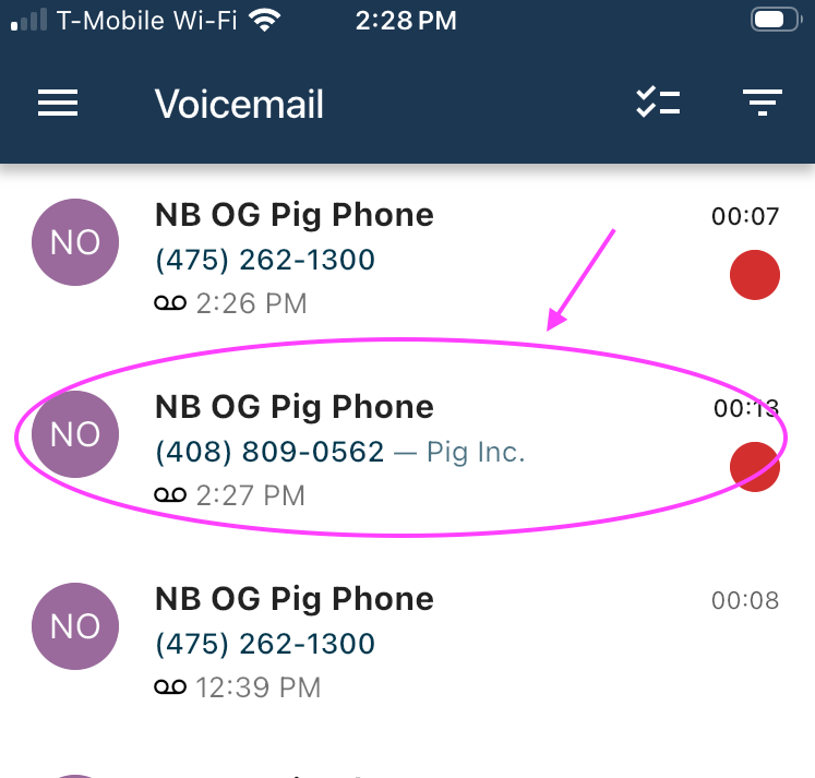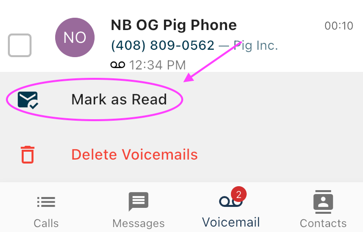 | This action will mark the voicemail as read and remove the red notification badge. |